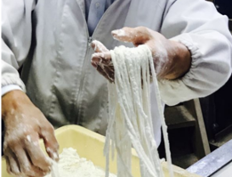 また、常に安定した品質の麺をお客様にお届けするため、日々の気温や湿度の変化にも対応できる、熟練した職人の手により製造を行っております。