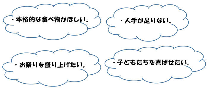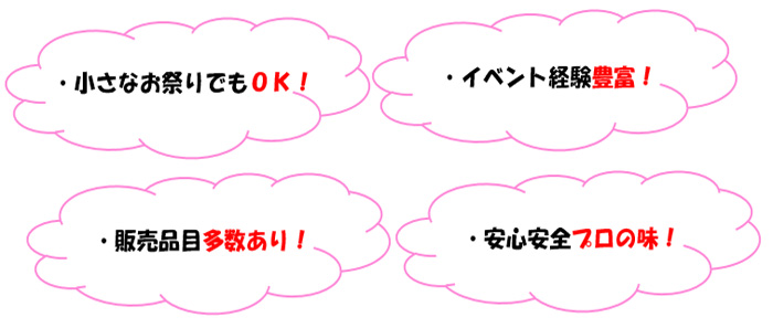 「出店してほしい!」というお声や、「飲食販売を代行してほしい!」といったお声等に対応しております。