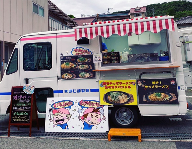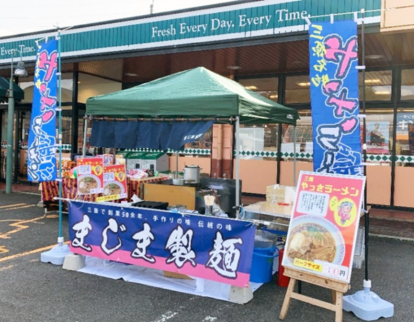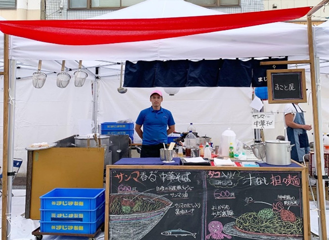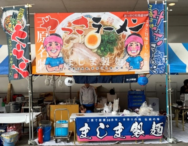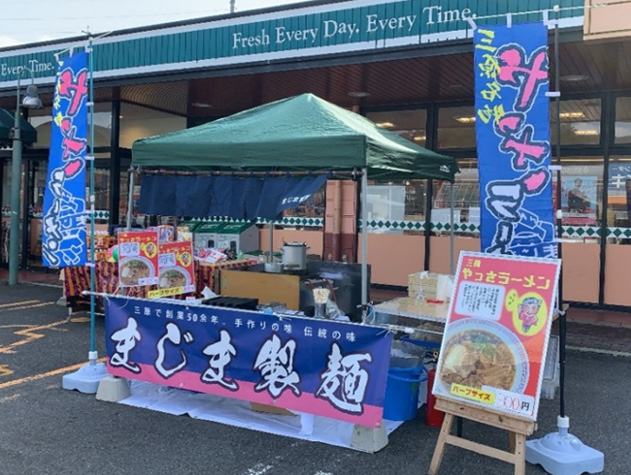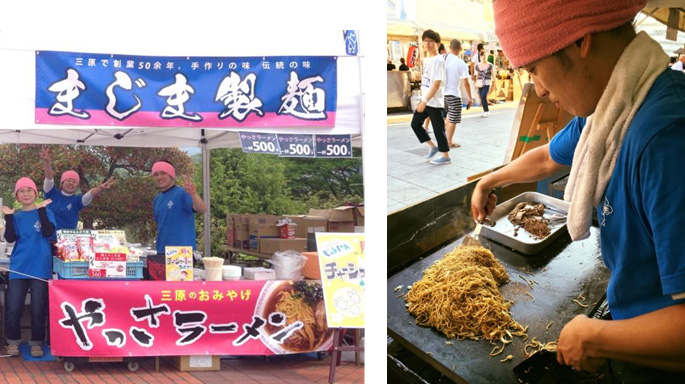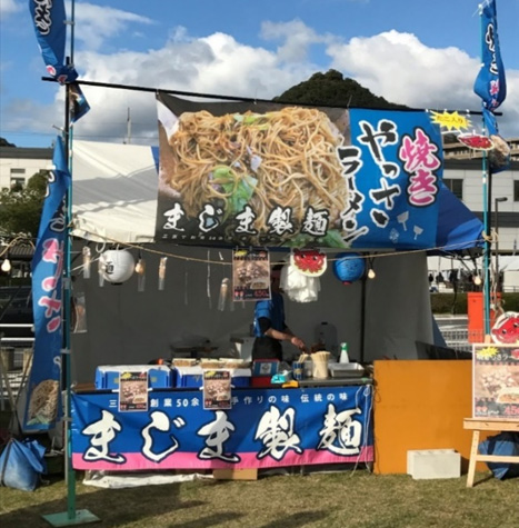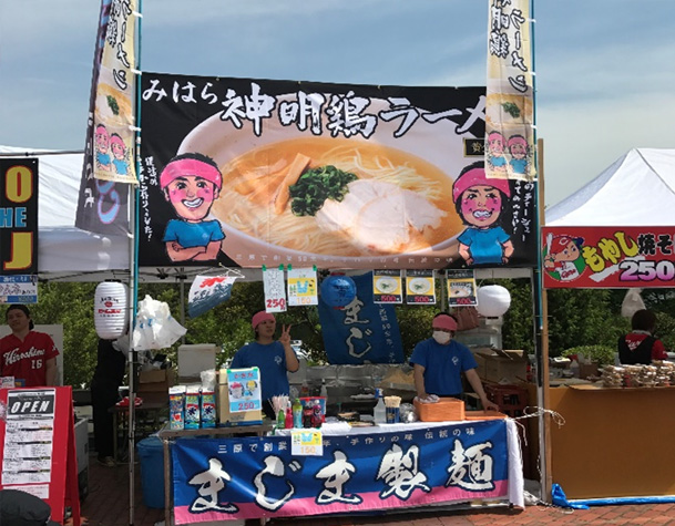 まじま製麺では、イベントやお祭り、町内の行事などには欠かせない飲食の出張販売をしており、製麺会社ならではのプロの味をご提供しております。